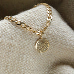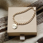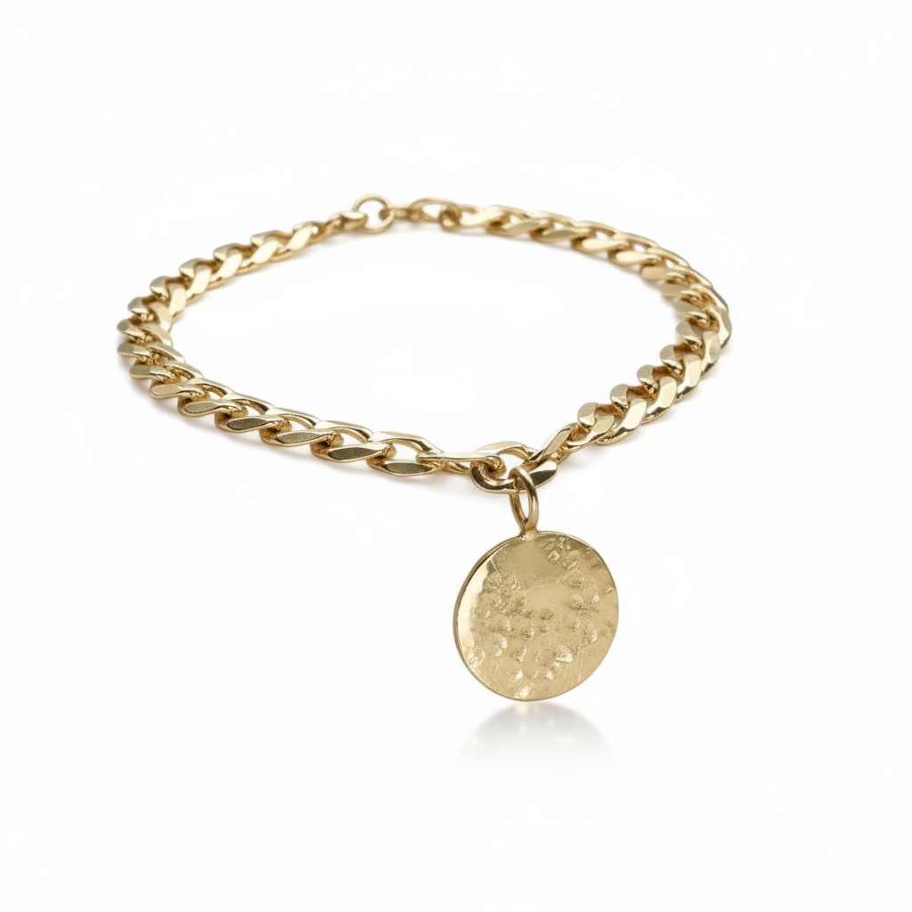 The Hammered Disc Chain Bracelet blends tradition with a modern flair. Its design is a nod to the timeless allure of celestial patterns. The flat Cuban link chain introduces a contemporary twist, symbolizing the unbroken thread that connects the past and the present. With delicate oval links, this bracelet invites you to elevate your style with its refined aesthetic.