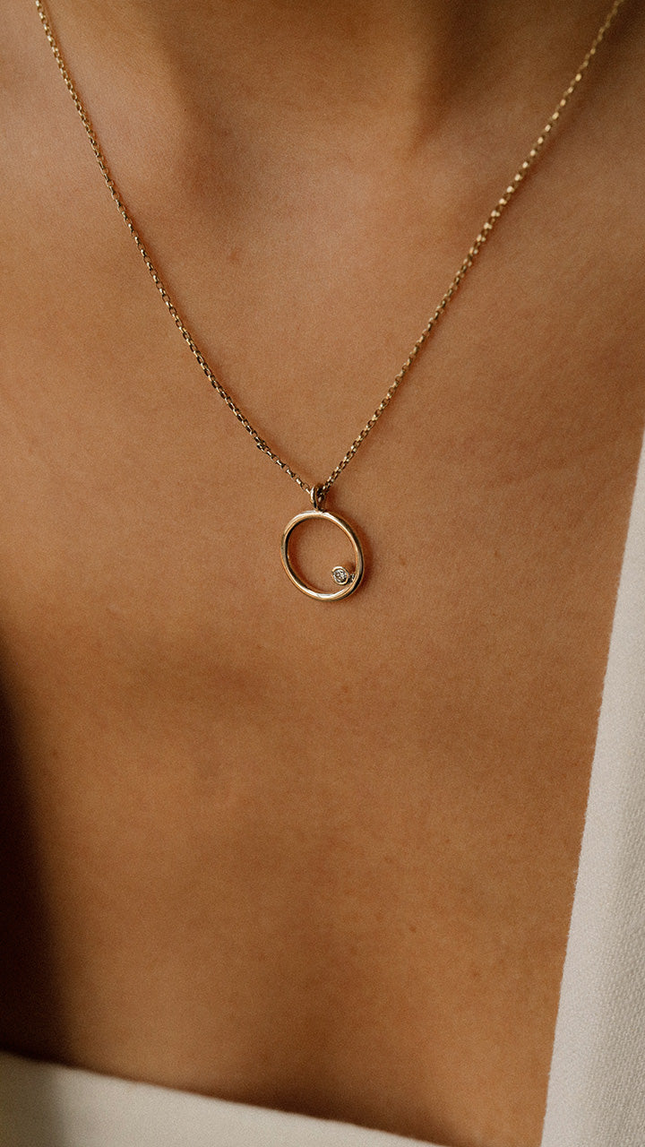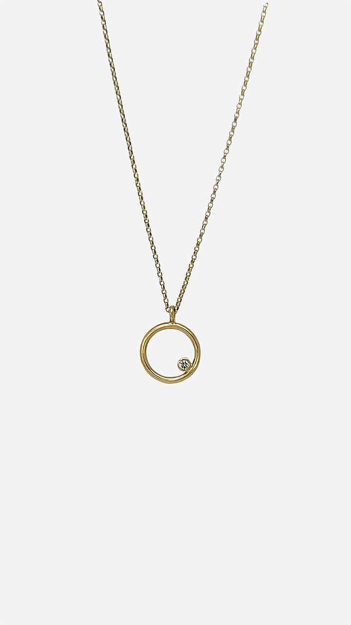 Introducing our Gorgeous 9ct Yellow Gold Circle Pendant with a Single Set Diamond - a timeless piece that will elevate any outfit.