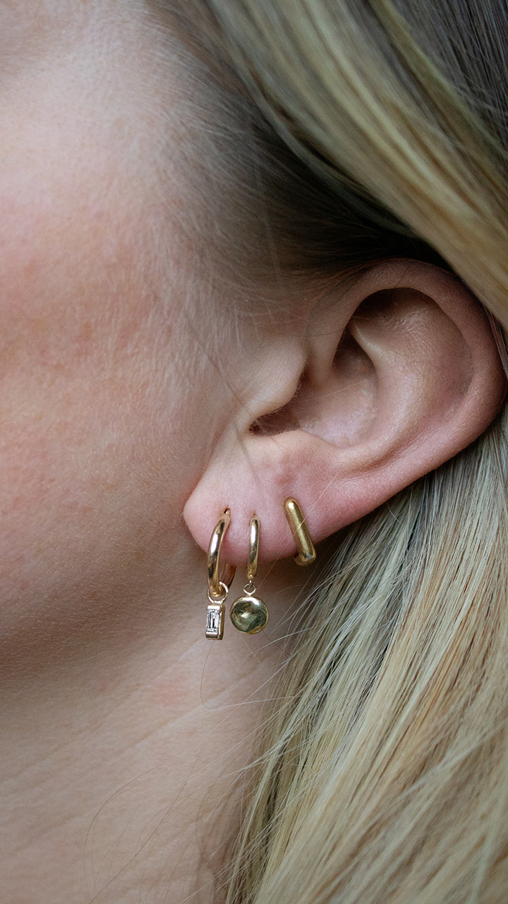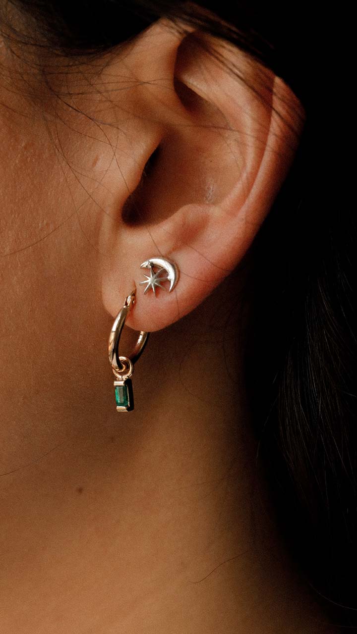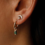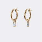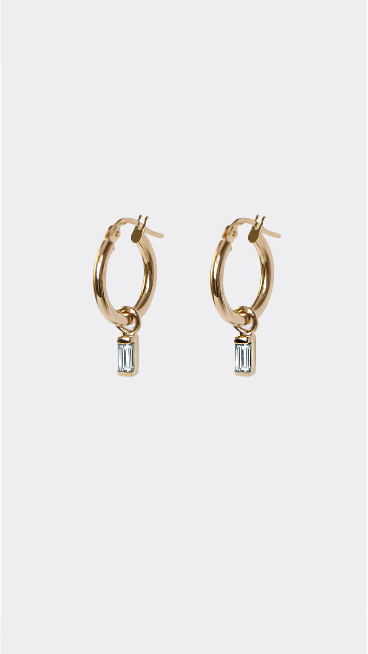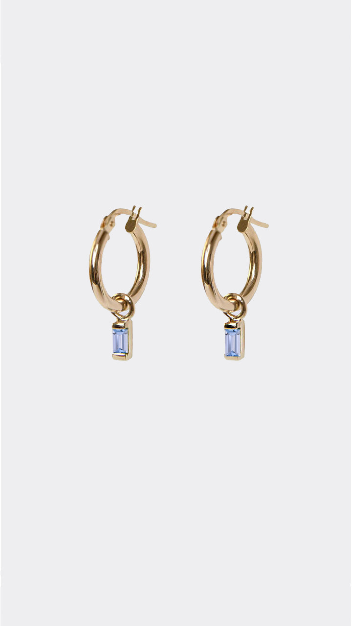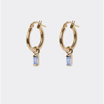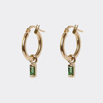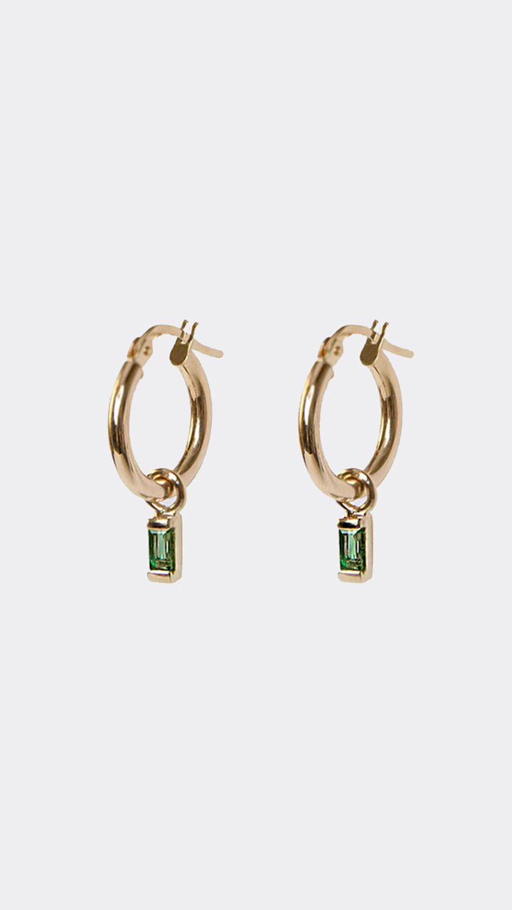 Add a sparkle to your jewellery collection with our stunning Drop Hoop Earrings. These handcrafted 9ct Yellow Gold Creole Hoop earrings feature a unique Baguette cut Diamond, Emerald or tanzanite that beautifully complements the sleek design. Perfect for adding a touch of elegance to any outfit.