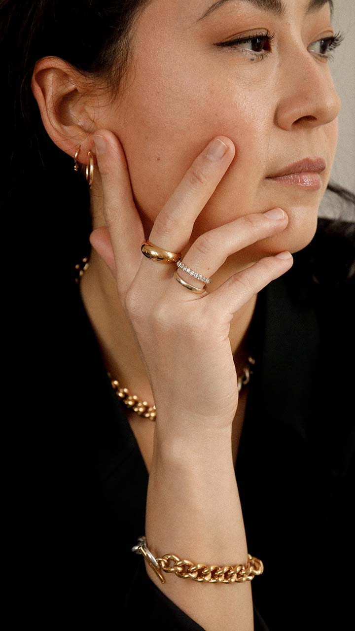 our stunning single stacking rings crafted in 9ct or 18ct yellow or