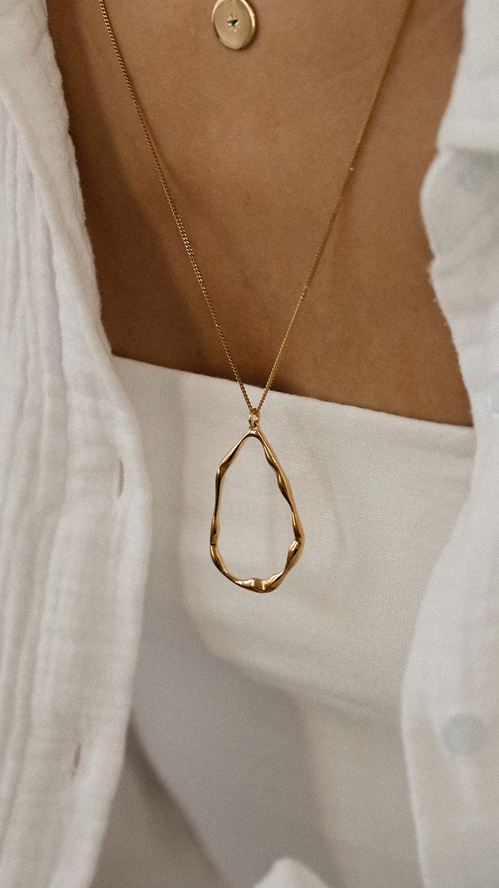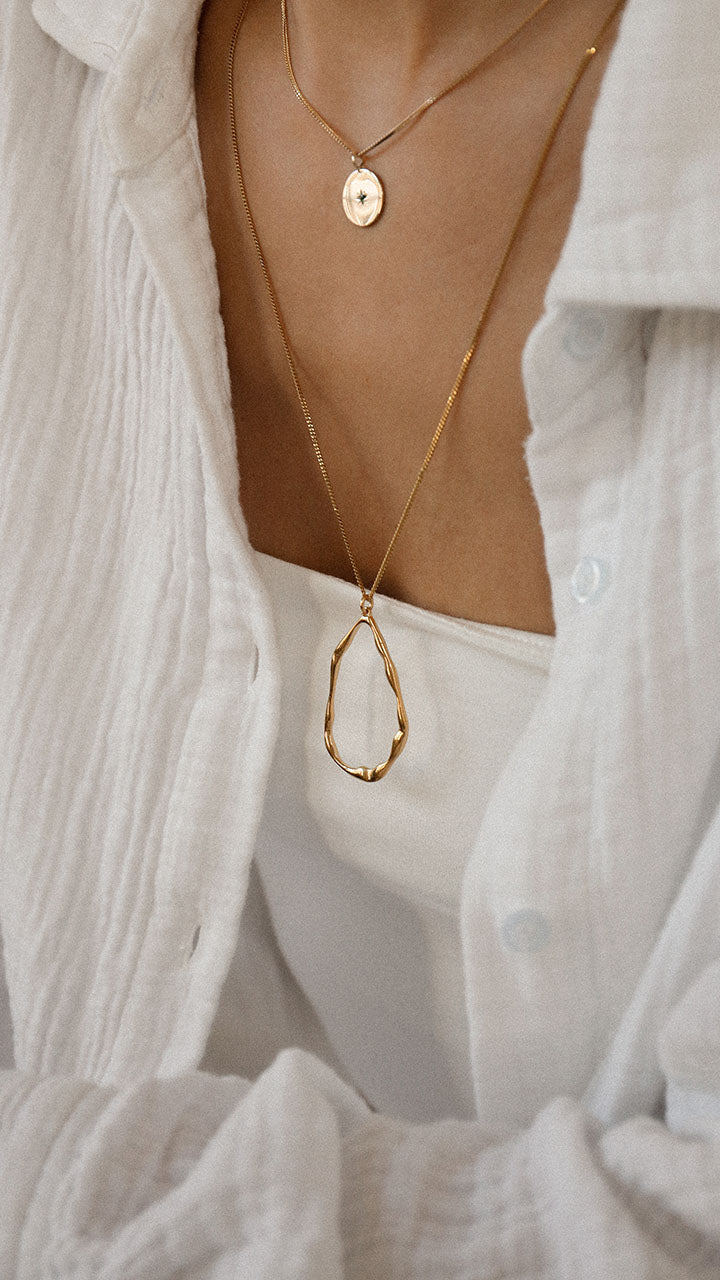 This stunning 9ct Gold Molten Pendant is a true statement piece that's sure to turn heads. Handcrafted with love and care, each piece is unique and one of a kind. The pendant sits on an 18" or 24" chain, making it the perfect accessory for any occasion.