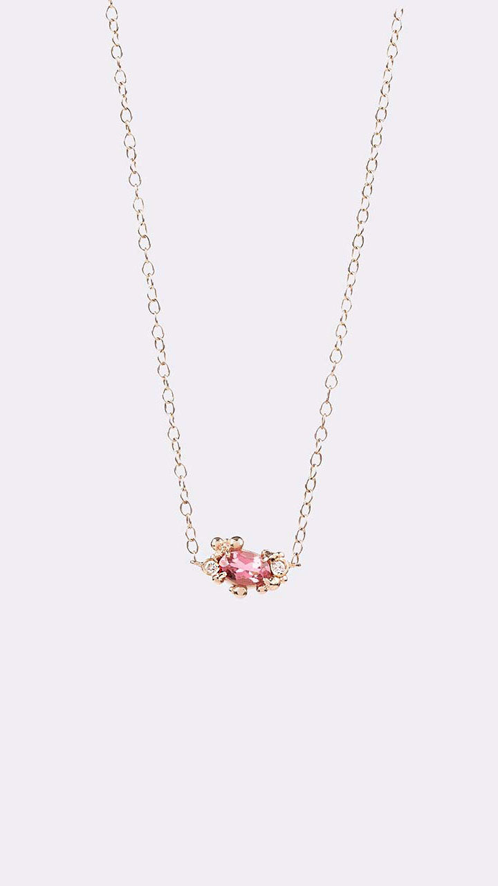 Stones : Peach oval Tourmaline 6x4mm, 2x 1mm round Diamonds