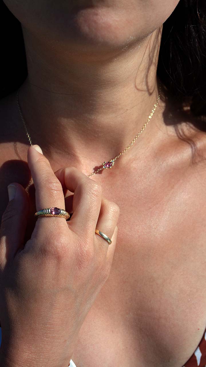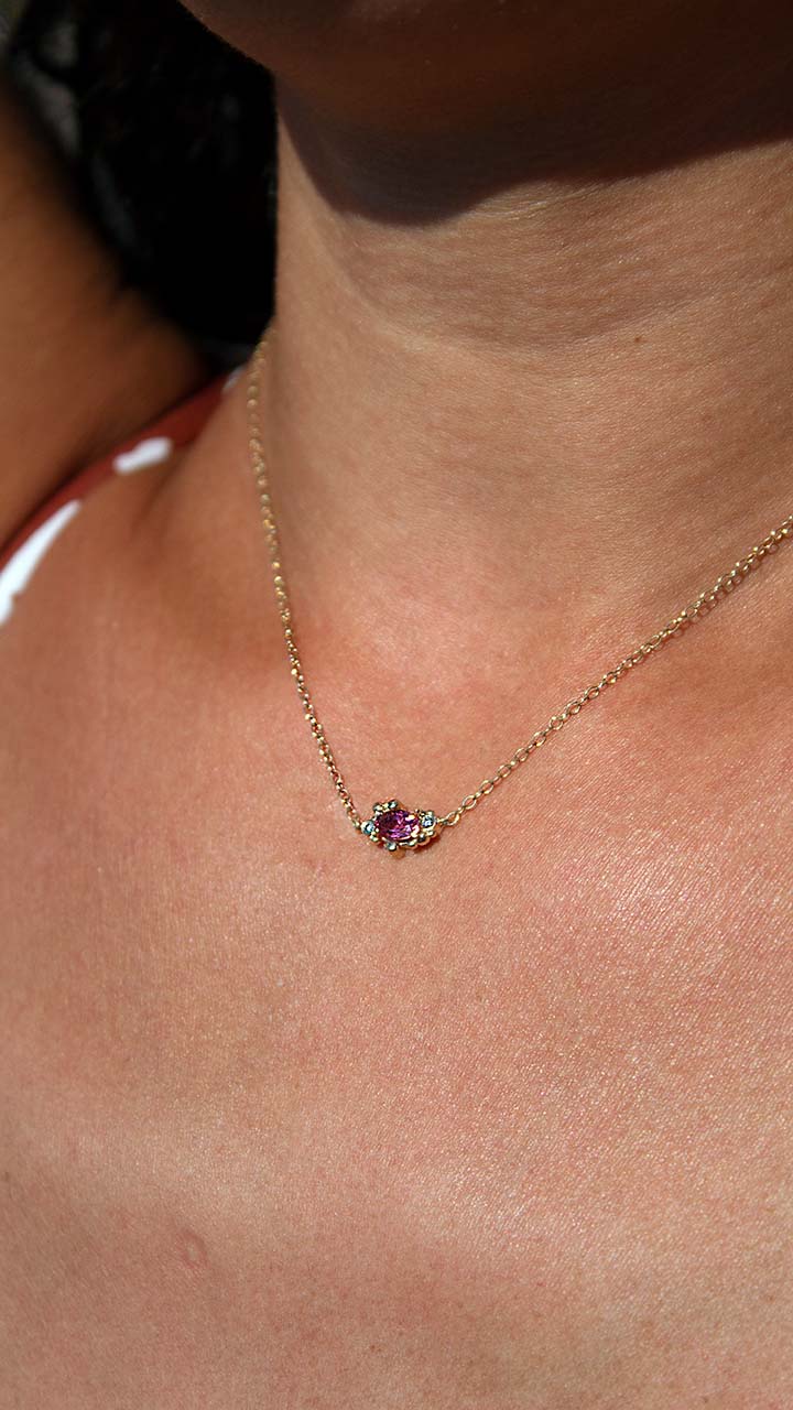 Introducing our stunning Peach Tourmaline & Diamond Divinus Pendant - a truly unique piece designed to inspire and empower. Handcrafted from 9ct Yellow Gold, this pendant features intricate granulation detail surrounding its oval centrepiece, which is accented with a beautiful diamond.