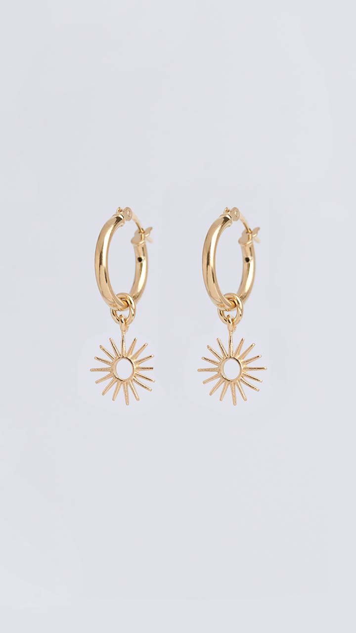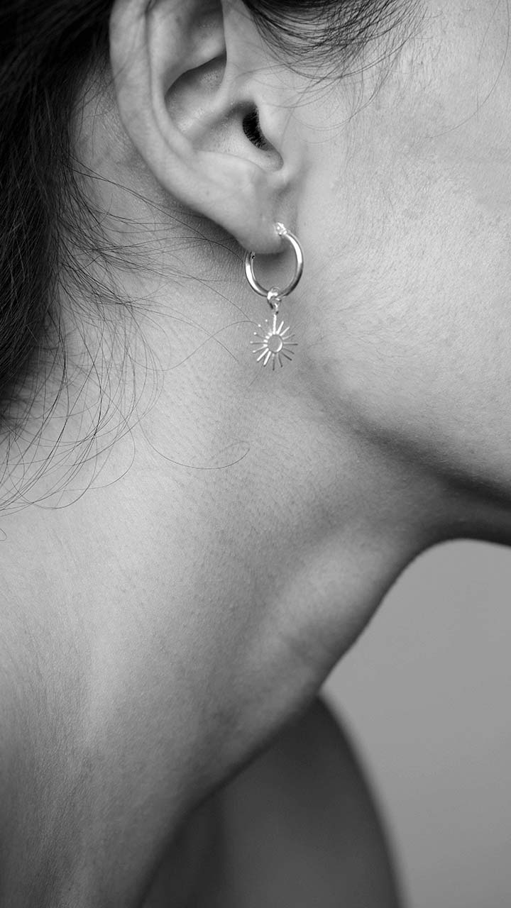 Metal: Sterling Silver Creole Hoop with Sun charm drop